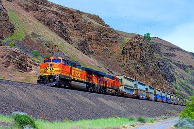 BNSF Railway Dash 9-44CW puzzle, based on an original photo by Dan Schwanz (photo copyright Dan Schwanz -- used with permission). Photographed at Maryhill, Washington, April 23, 2024.