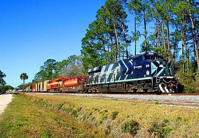 Florida East Coast Railroad (FEC) ES44C4 puzzle, based on an original photo by Bob Pickering (photo copyright Bob Pickering -- used with permission). Photographed at Bunnell, Florida, January 14, 2025.