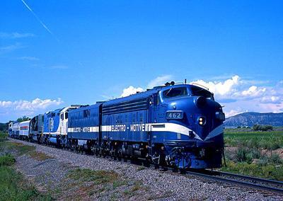EMDX F9(A) puzzle, based on an original photo by Joe Blackwell (photo copyright Joe Blackwell -- used with permission). Photographed at Hoehnes, Colorado, September, 1984.