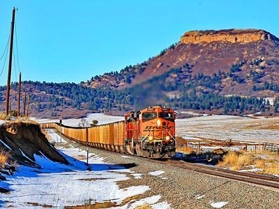 BNSF Railway ES44AC puzzle, based on an original photo by Joel Hinkhouse (photo copyright Joel Hinkhouse -- used with permission). Photographed at Greenland, Colorado, December 2, 2024.