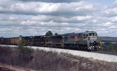 Seaboard System U30C puzzle, based on an original photo by Bernie Feltman (photo copyright Bernie Feltman -- used with permission). Photographed at Manchester, Georgia, April 10, 1984.