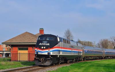 Amtrak P40DC puzzle, based on an original photo by Frank Jolin (photo copyright Frank Jolin -- used with permission). Photographed at St-Jean-sur-Richelieu, Quebec, May 12, 2016.