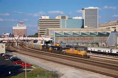 Union Pacific SD70M puzzle, based on an original photo by David Hawkins (photo copyright David Hawkins -- used with permission). Photographed at Kansas City, Missouri, June 11, 2017.