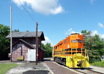 Indiana & Ohio Railway GP40-2 puzzle, based on an original photo by David Rohdenburg (photo copyright David Rohdenburg -- used with permission). Photographed at Midland City, Ohio, June 19, 2017.
