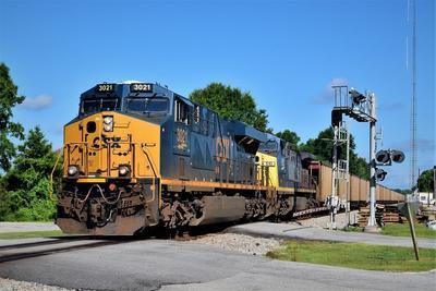 CSX Transportation (CSXT) ES44AC puzzle, based on an original photo by Christopher Rambo (photo copyright Christopher Rambo -- used with permission). Photographed at Clinton, South Carolina, June, 2017