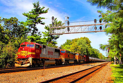 BNSF Railway SD75I puzzle, based on an original photo by Christopher Blaszczyk (photo copyright Christopher Blaszczyk -- used with permission). Photographed at Bogota, New Jersey, September 7, 2013.