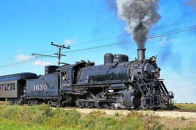 Frisco 2-10-0 puzzle, based on an original photo by Jack Bejna (photo copyright Jack Bejna -- used with permission). Photographed at Union, Illinois, October, 1985.