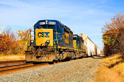CSX Transportation (CSXT) SD40-2 puzzle, based on an original photo by Rich Kaminsky (photo copyright Rich Kaminsky -- used with permission). Photographed at Berea, Ohio, October 26, 2015.