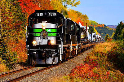 Chemin de Fer de la Gaspésie RS-18 puzzle, based on an original photo by Dannick Fournier (photo copyright Dannick Fournier -- used with permission). Photographed at Cascapédia, Quebec, October 8, 2017.