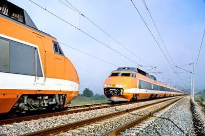 SNCF TGV SE puzzle, based on an original photo by Jean-Marc Frybourg (photo copyright Jean-Marc Frybourg -- used with permission). Photographed at Montchanin, France, September, 1980.