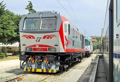 Trenitalia D 449 puzzle, based on an original photo by Mario Serrano (photo copyright Mario Serrano -- used with permission). Photographed at Rimini, Italy, June 12, 2010.