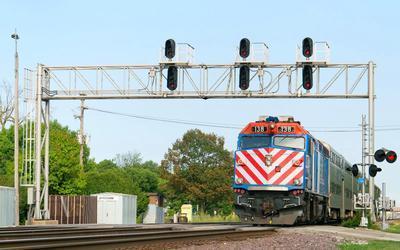Metra F40PH-3 puzzle, based on an original photo by Joseph Cermak (photo copyright Joseph Cermak -- used with permission). Photographed at Elmhurst, Illinois, August 16, 2018.