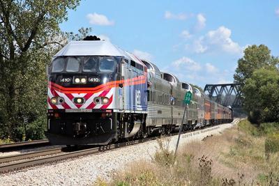 Metra MP36PH-3C puzzle, based on an original photo by Erik Rasmussen (photo copyright Erik Rasmussen -- used with permission). Photographed at New Lenox, Illinois, September 16, 2018.
