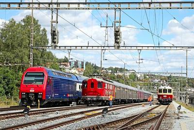 Trans Rail Re 4/4 I puzzle, based on an original photo by Richard Behrbohm (photo copyright Richard Behrbohm -- used with permission). Photographed at Schaffhausen, Switzerland, August 11, 2018.