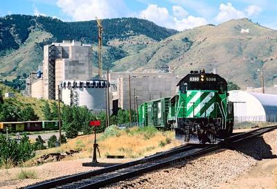 Burlington Northern Railroad SDP40 puzzle, based on an original photo by Mike Danneman (photo copyright Mike Danneman -- used with permission). Photographed at Golden, Colorado, July 14, 1986.