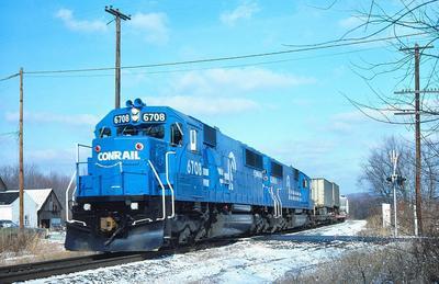 Conrail SD50 puzzle, based on an original photo by Jim Appleman (photo copyright Jim Appleman -- used with permission). Photographed at Muncy, Pennsylvania, December 3, 1983.