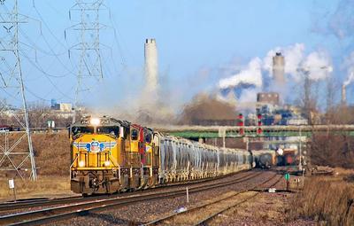 Union Pacific SD70M puzzle, based on an original photo by Tom Farence (photo copyright Tom Farence -- used with permission). Photographed at Camanche, Iowa, January, 2019.