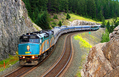 VIA Rail F40PH-3 puzzle, based on an original photo by Mike Danneman (photo copyright Mike Danneman -- used with permission). Photographed at Jasper, Alberta, July 14, 2013.