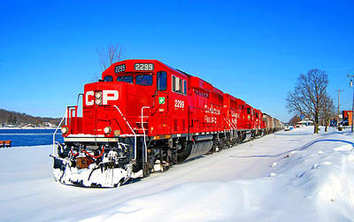 Canadian Pacific Railway GP20C-ECO puzzle, based on an original photo by Tom Farence (photo copyright Tom Farence -- used with permission). Photographed at Port Byron, Illinois, February 18, 2019.