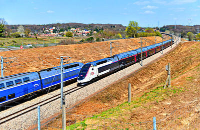 SNCF TGV Duplex puzzle, based on an original photo by Jean-Marc Frybourg (photo copyright Jean-Marc Frybourg -- used with permission). Photographed at Briis-sous-Forges, France, March 31, 2019.
