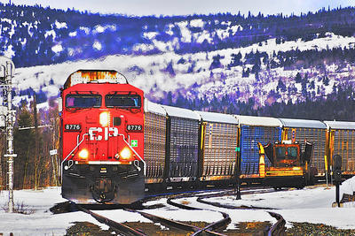 Canadian Pacific Railway ES44AC puzzle, based on an original photo by James Heinrich (photo copyright James Heinrich -- used with permission). Photographed at Marathon, Ontario, April 21, 2013.