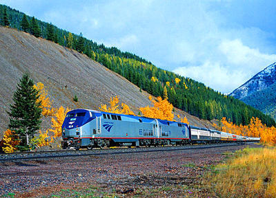 Amtrak P42DC puzzle, based on an original photo by Dave Schauer (photo copyright Dave Schauer -- used with permission). Photographed at Essex, Montana, October 11, 2002.