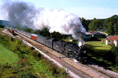 Nickel Plate Road 2-8-4 puzzle, based on an original photo by Bob Krone (photo copyright Bob Krone -- used with permission). Photographed at Soddy-Daisy, Tennessee, October 17, 1982.