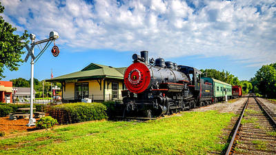 Baldwin 2-6-2 puzzle, based on an original photo by Brent Michael (photo copyright Brent Michael -- used with permission). Photographed at Lynnville, Tennessee, August 27, 2016.