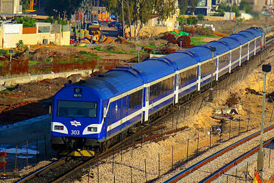 Israel Railways Alstom puzzle, based on an original photo by Michael Sender (photo copyright Michael Sender -- used with permission). Photographed at Herzliya, Israel, January 3, 2018.