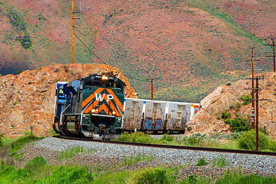 Union Pacific SD70ACe puzzle, based on an original photo by Russell Watson (photo copyright Russell Watson -- used with permission). Photographed at Pegram, Idaho, June 16, 2018.