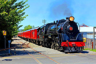 Steam Incorporated 4-8-2 puzzle, based on an original photo by John Russell (photo copyright John Russell -- used with permission). Photographed at Masterton, New Zealand, January 5, 2019.