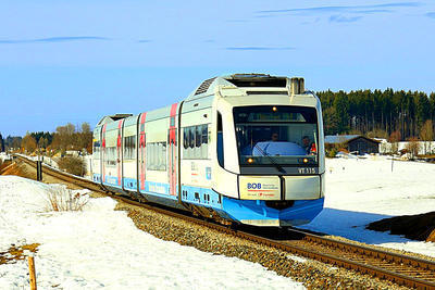 Bayerische Oberlandbahn Integral puzzle, based on an original photo by Reinhard Reiss (photo copyright Reinhard Reiss -- used with permission). Photographed at Reichersbeuern, Germany, March 3, 2019.