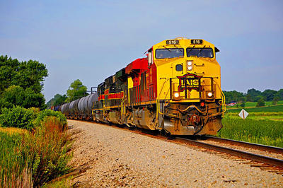 Iowa Interstate Railroad ES44AC puzzle, based on an original photo by Bradley Bates (photo copyright Bradley Bates -- used with permission). Photographed at Wiota, Iowa, July 2, 2019.