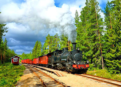 DONJ 0-6-6-0 puzzle, based on an original photo by Daniel Simon (photo copyright Daniel Simon -- used with permission). Photographed at Jädraås, Sweden, July 5, 2019.