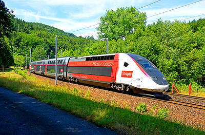 Lyria TGV 2N2 puzzle, based on an original photo by Brian Stephenson (photo copyright Brian Stephenson -- used with permission). Photographed at Saverne, France, July 17, 2019