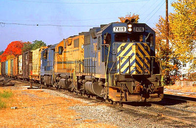 Delaware & Hudson GP39-2 puzzle, based on an original photo by Tom Nelligan (photo copyright Tom Nelligan -- used with permission). Photographed at Ayer, Massachusetts, October, 1984.