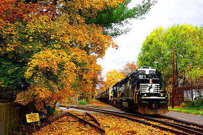 Norfolk Southern SD40-2 puzzle, based on an original photo by Tiffany Morley (photo copyright Tiffany Morley -- used with permission). Photographed at Painted Post, New York, October 27, 2019.