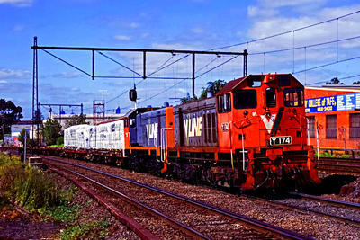 V/Line Y Class puzzle, based on an original photo by Ian Green (photo copyright Ian Green -- used with permission). Photographed at Footscray, Melbourne, Australia, August, 1997.