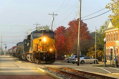 CSX Transportation (CSXT) ES44AC puzzle, based on an original photo by Robert Jordan (photo copyright Robert Jordan -- used with permission). Photographed at Lawrenceburg, Indiana, November 6, 2019.