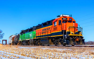 BNSF Railway GP39-3 puzzle, based on an original photo by Samuel Brodersen (photo copyright Samuel Brodersen -- used with permission). Photographed at De Witt, Nebraska, January 20, 2020.