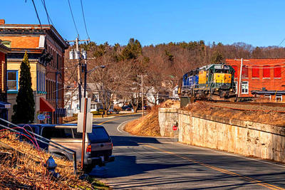 Housatonic Railroad GP35 puzzle, based on an original photo by Nathan Sloski (photo copyright Nathan Sloski -- used with permission). Photographed at Housatonic, Massachusetts, March 22, 2020.