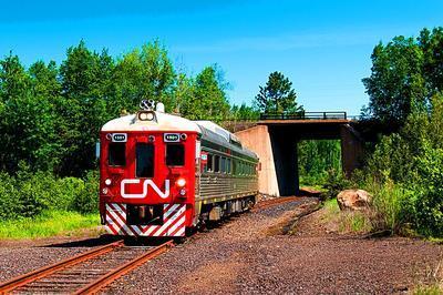 Canadian National Railway RDC puzzle, based on an original photo by Shawn Christie (photo copyright Shawn Christie -- used with permission). Photographed at Hoyt Lakes, Minnesota, June 30, 2013.