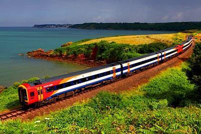 South West Trains 159 puzzle, based on an original photo by Robert Sherwood (photo copyright Robert Sherwood -- used with permission). Photographed at Paignton, United Kingdom, June 28, 2014.