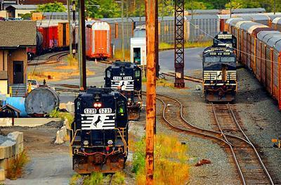 Norfolk Southern GP38-2 puzzle, based on an original photo by Anthony Paci (photo copyright Anthony Paci -- used with permission). Photographed at Wilmington, Delaware, September 22, 2015.