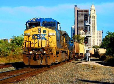 CSX Transportation (CSXT) Dash 8-40CW puzzle, based on an original photo by Mike Stupar (photo copyright Mike Stupar -- used with permission). Photographed at Columbus, Ohio, October 8, 2016.