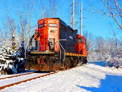 Camp Chase Railroad GP9R puzzle, based on an original photo by Mike Stupar (photo copyright Mike Stupar -- used with permission). Photographed at Columbus, Ohio, December 14, 2016.