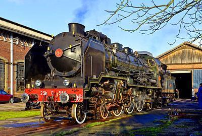 Pacific Vapeur Club 231G puzzle, based on an original photo by Jean-Louis Poggi (photo copyright Jean-Louis Poggi -- used with permission). Photographed at Sotteville Workshops, France, January 26, 2018.