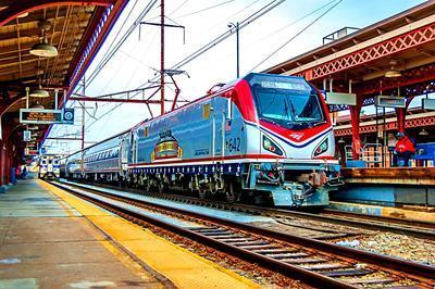 Amtrak ACS-64 puzzle, based on an original photo by Robert L. Sartain (photo copyright Robert L. Sartain -- used with permission). Photographed at Wilmington, Delaware, April 13, 2018.
