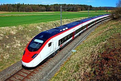 SBB RABe 501 puzzle, based on an original photo by Richard Behrbohm (photo copyright Richard Behrbohm -- used with permission). Photographed at Gisenhard, Switzerland, April 4, 2018.