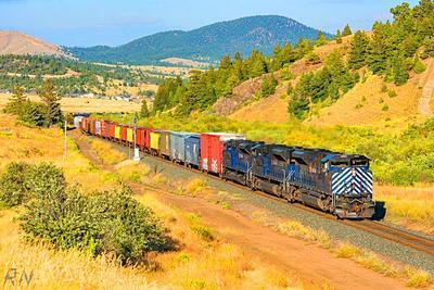 Montana Rail Link SD70ACe puzzle, based on an original photo by Ryan Nicolay (photo copyright Ryan Nicolay -- used with permission). Photographed at Austin, Montana, August, 2018.